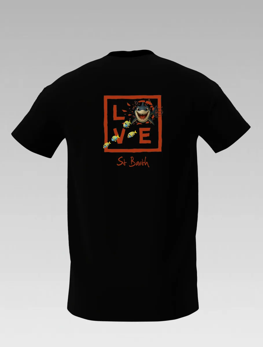 This black T-shirt from St Barth, part of the LOVE Shark line, brings the thrill of the ocean to life.