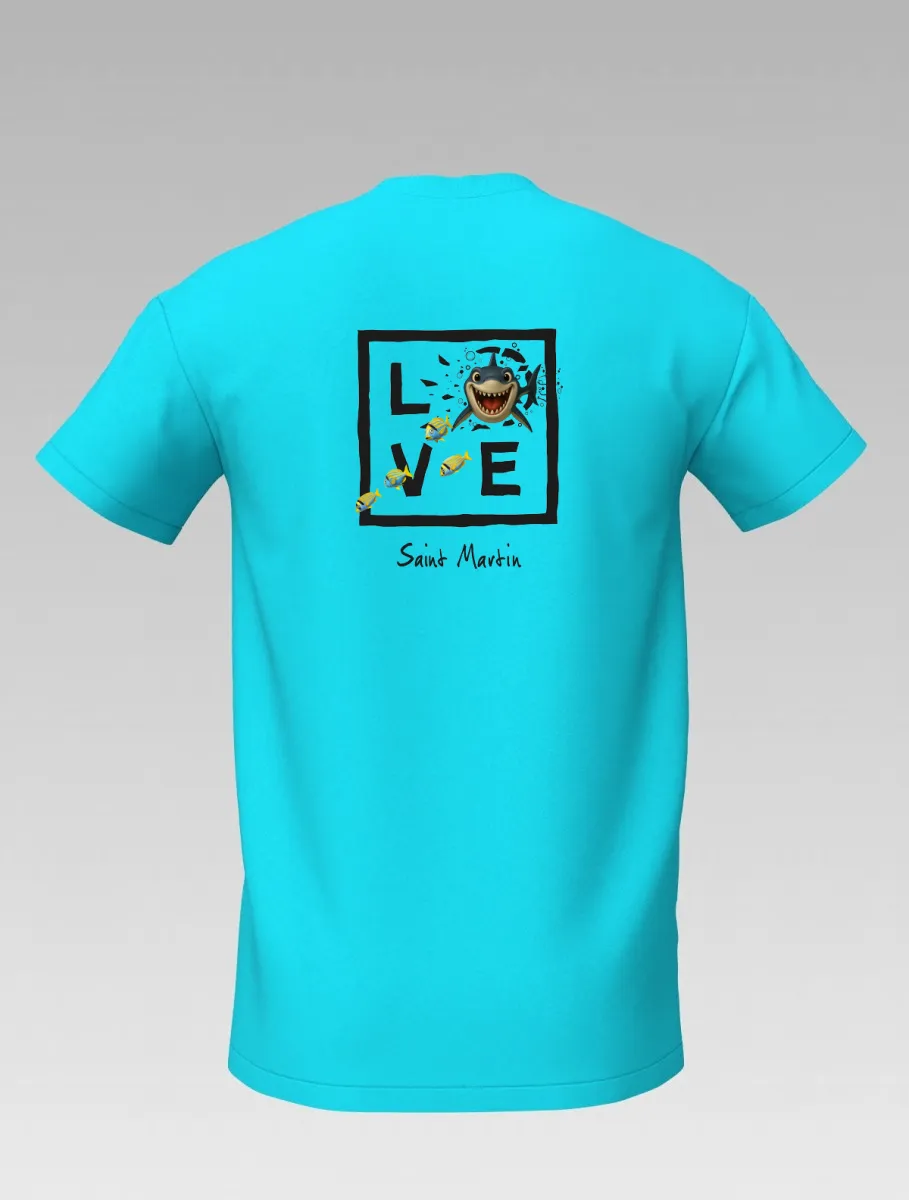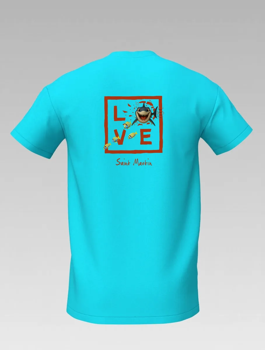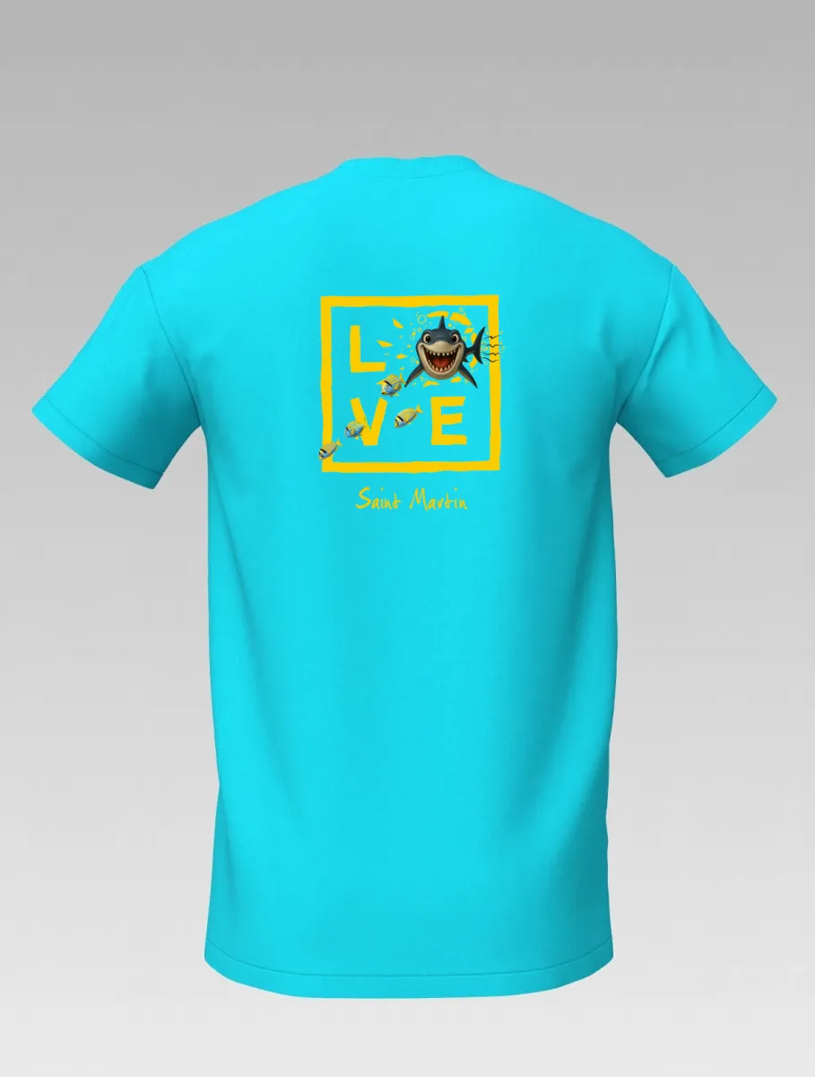 This turquoise T-shirt from St Barth, part of the LOVE Shark line, brings the thrill of the ocean to life.