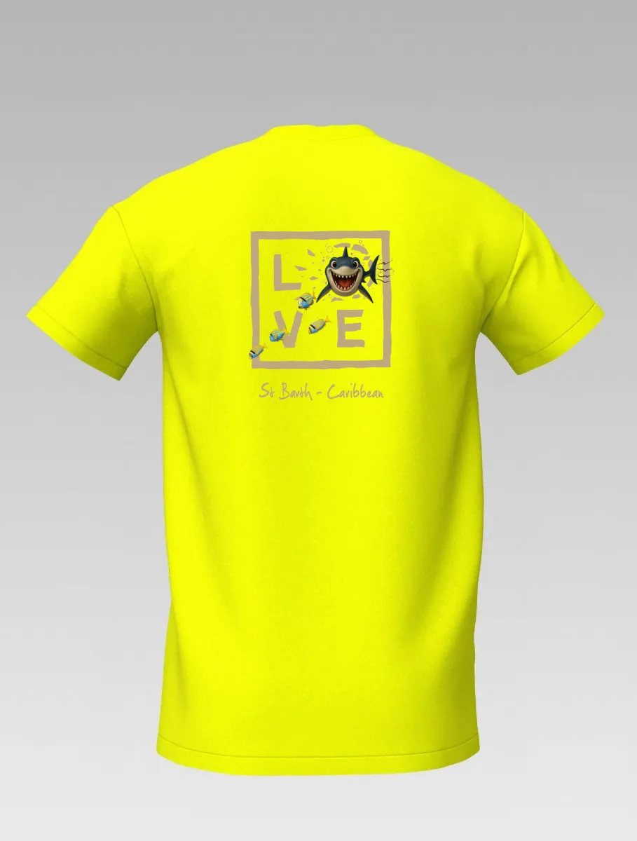 This yellow T-shirt from St Barth, part of the LOVE Shark line, brings the thrill of the ocean to life.