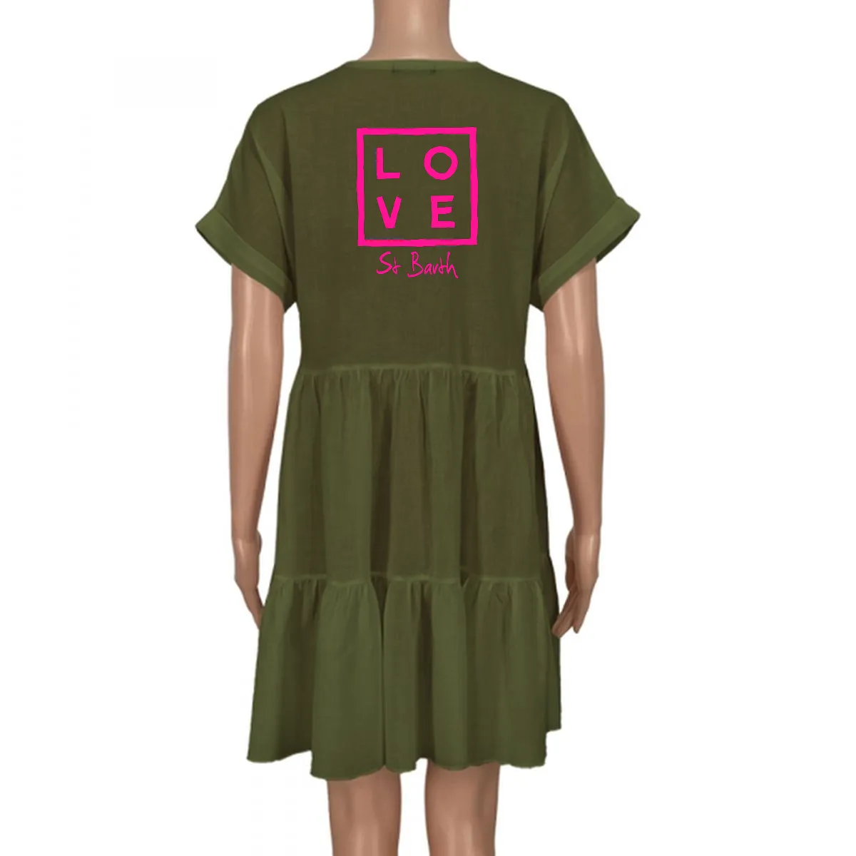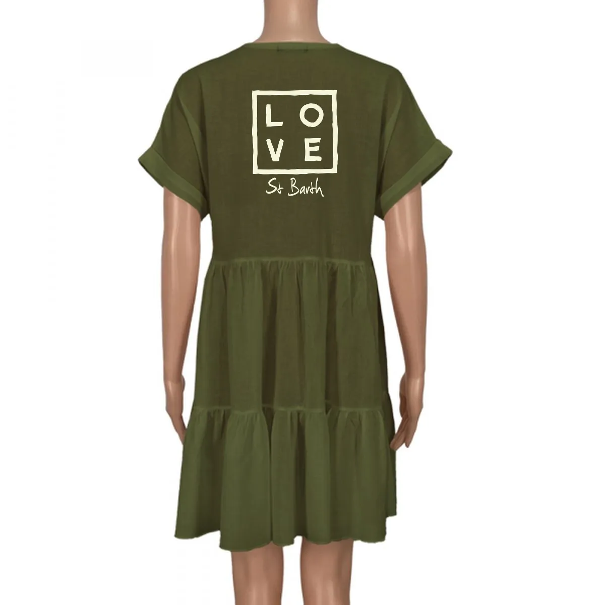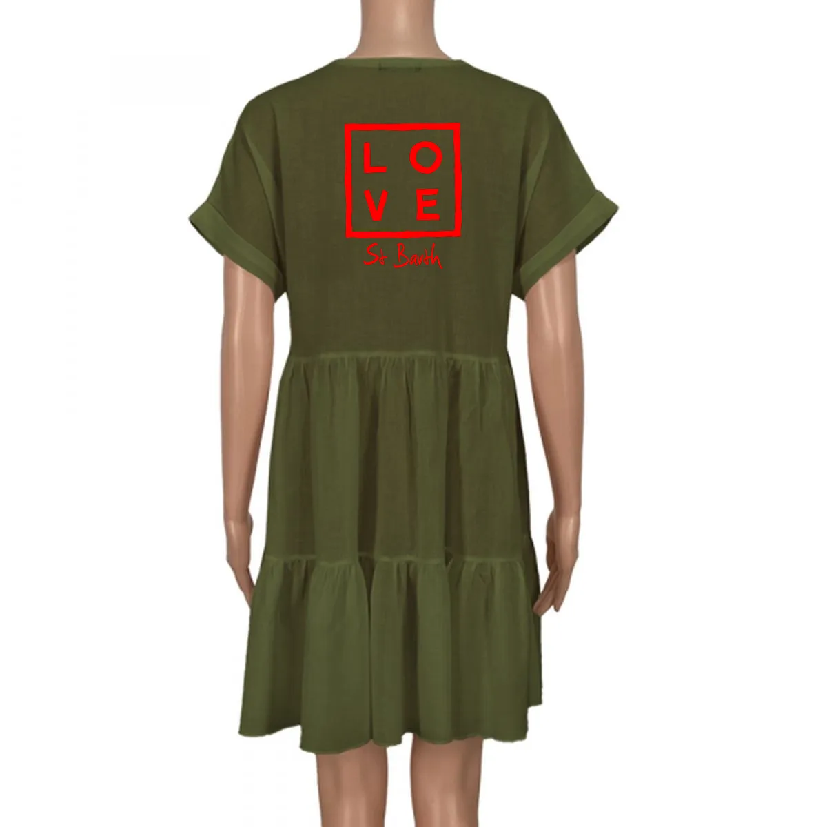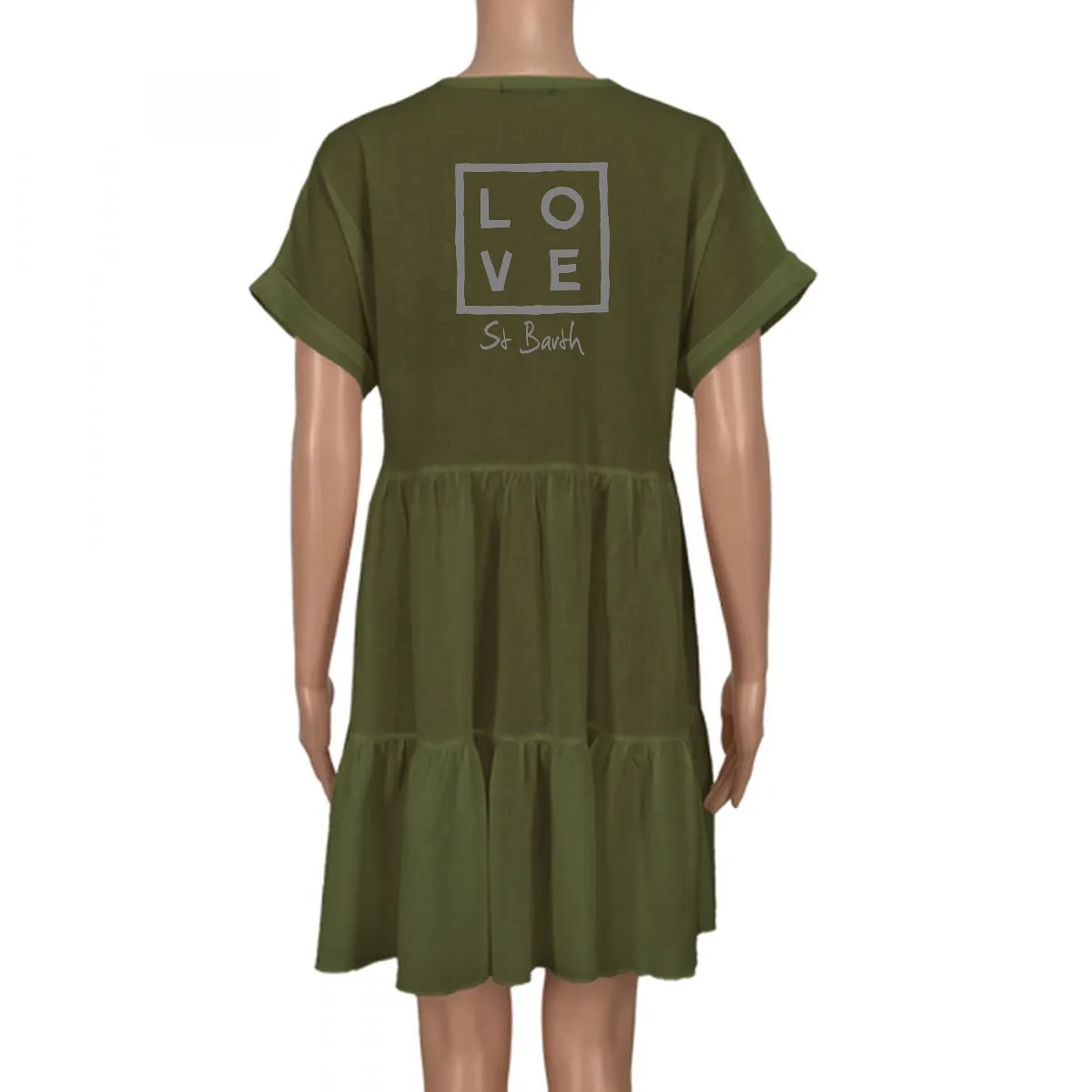 The Eva Dress combines comfort and elegance in a light, flowing silhouette. Its V-neckline and wide sleeves add a touch of freshness and movement, while the loose fit drapes naturally and gracefully.