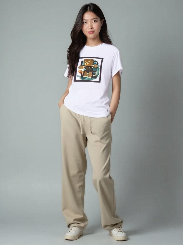On the front: an adorable surfing teddy bear illustration! But the real twist is the texture — the bear's body is made of plush-like textile. Its head, ears, arms, and legs are in soft relief, offering a thick, touchable fabric that feels as comforting as a cuddle.