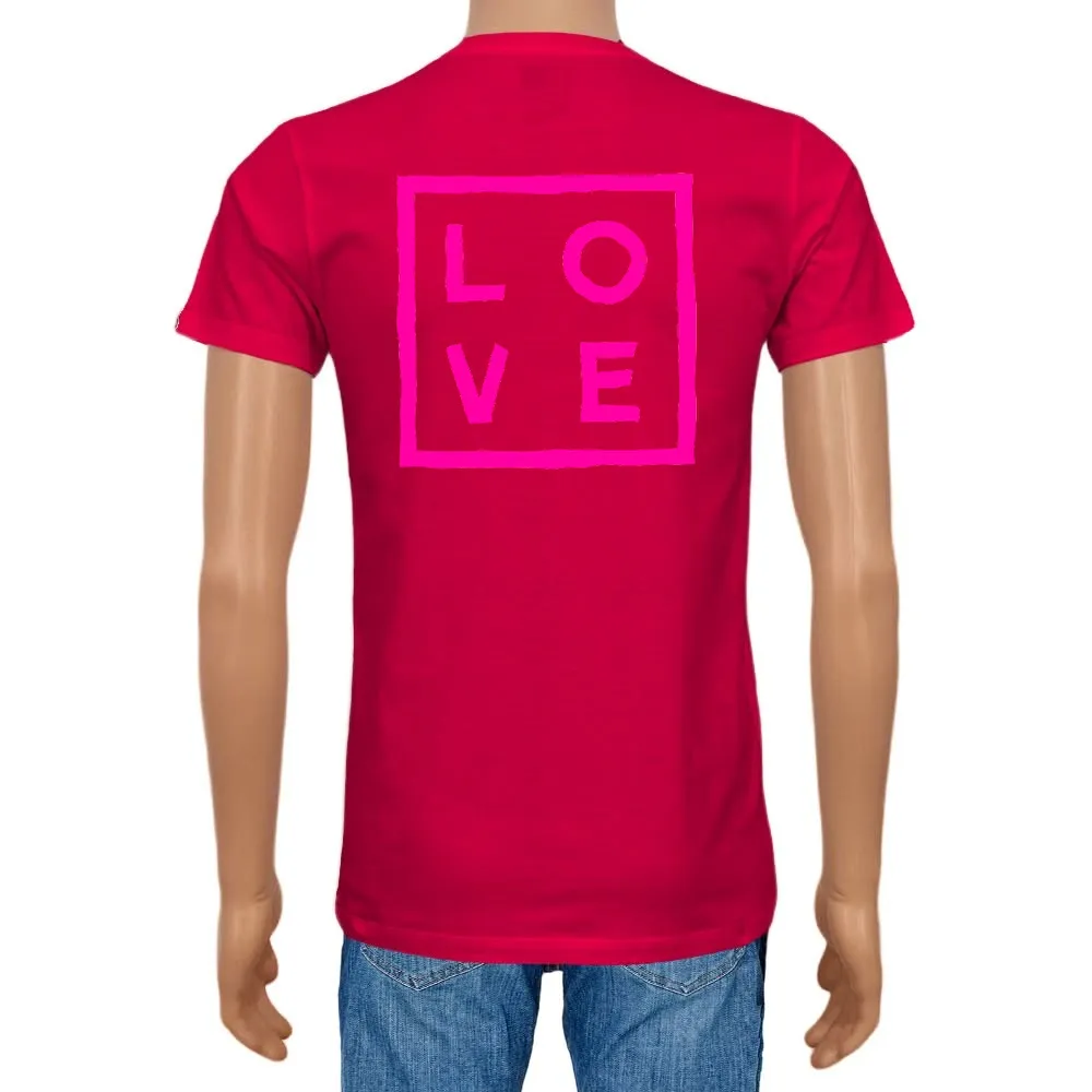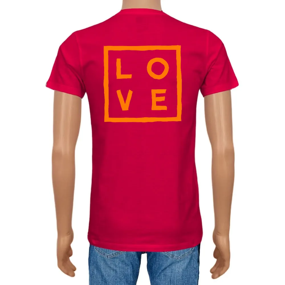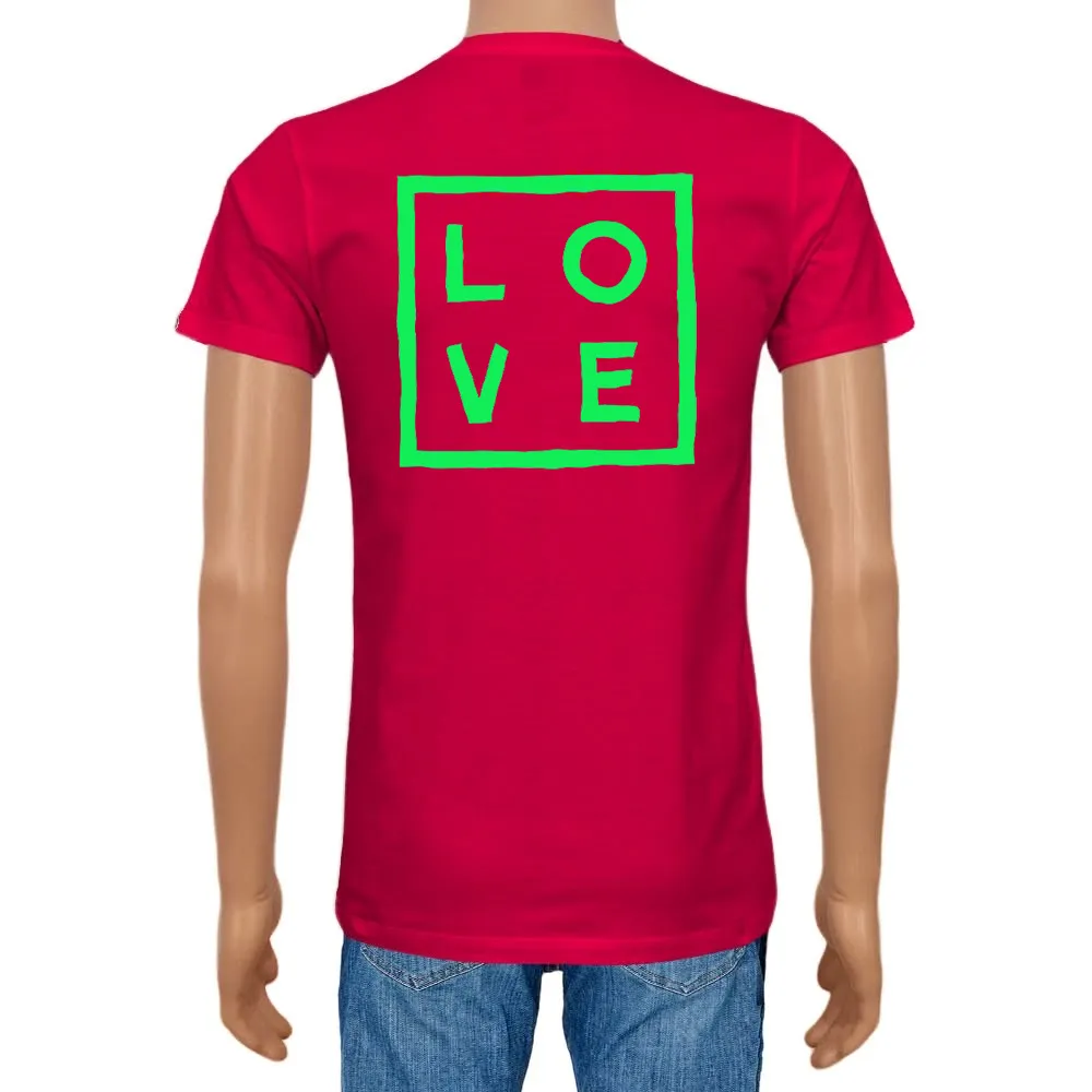 Men's T-shirt Cotton Plain V-Neck Cherry red Logo Fluo - Love Concept Store.