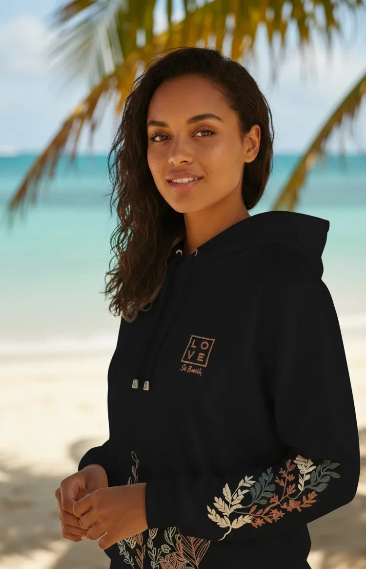 Designed to reflect the DNA of the LOVE brand and St. Barthélemy, this high-end hoodie stands out with its sophisticated embroidery: