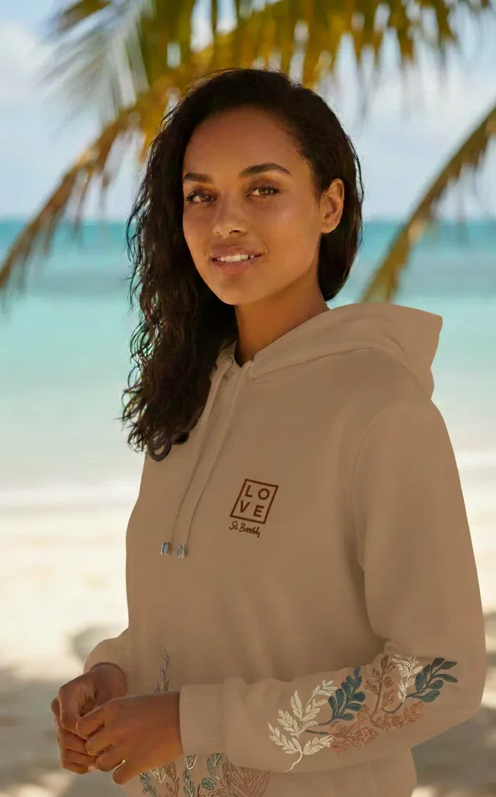 Love Concept Store St Barth is proud to present one of the most iconic pieces from its new collection: the Embroidered Hoodie, a statement piece designed and crafted with care in our workshops in Colombia.