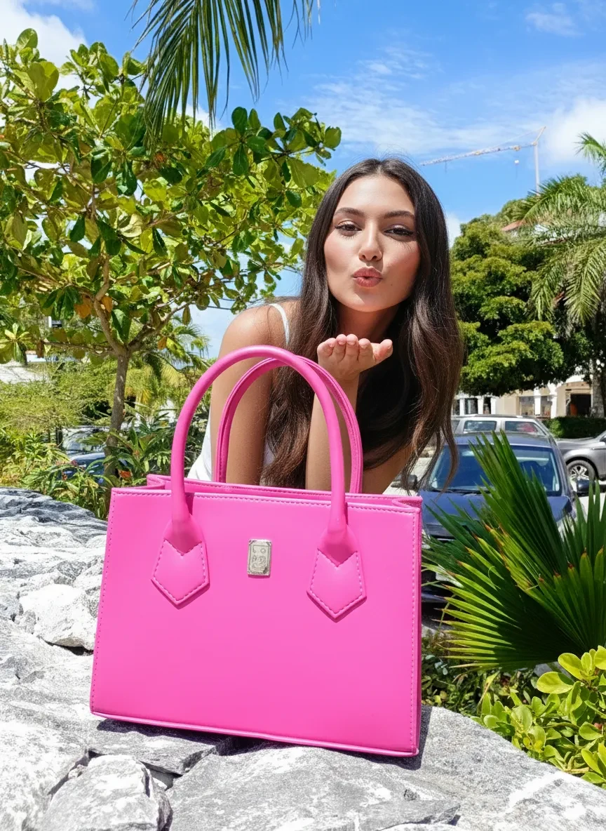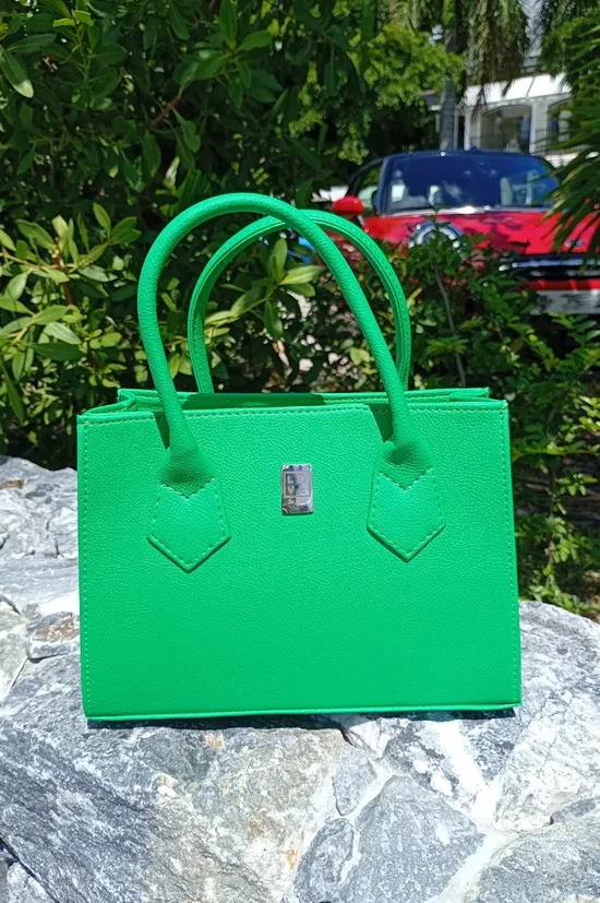With its ideal dimensions (22 x 16 x 8 cm), this compact bag combines elegance, practicality, and a fresh vibe. Available in vibrant fuchsia, bright green, or natural beige, it brightens up any outfit.
